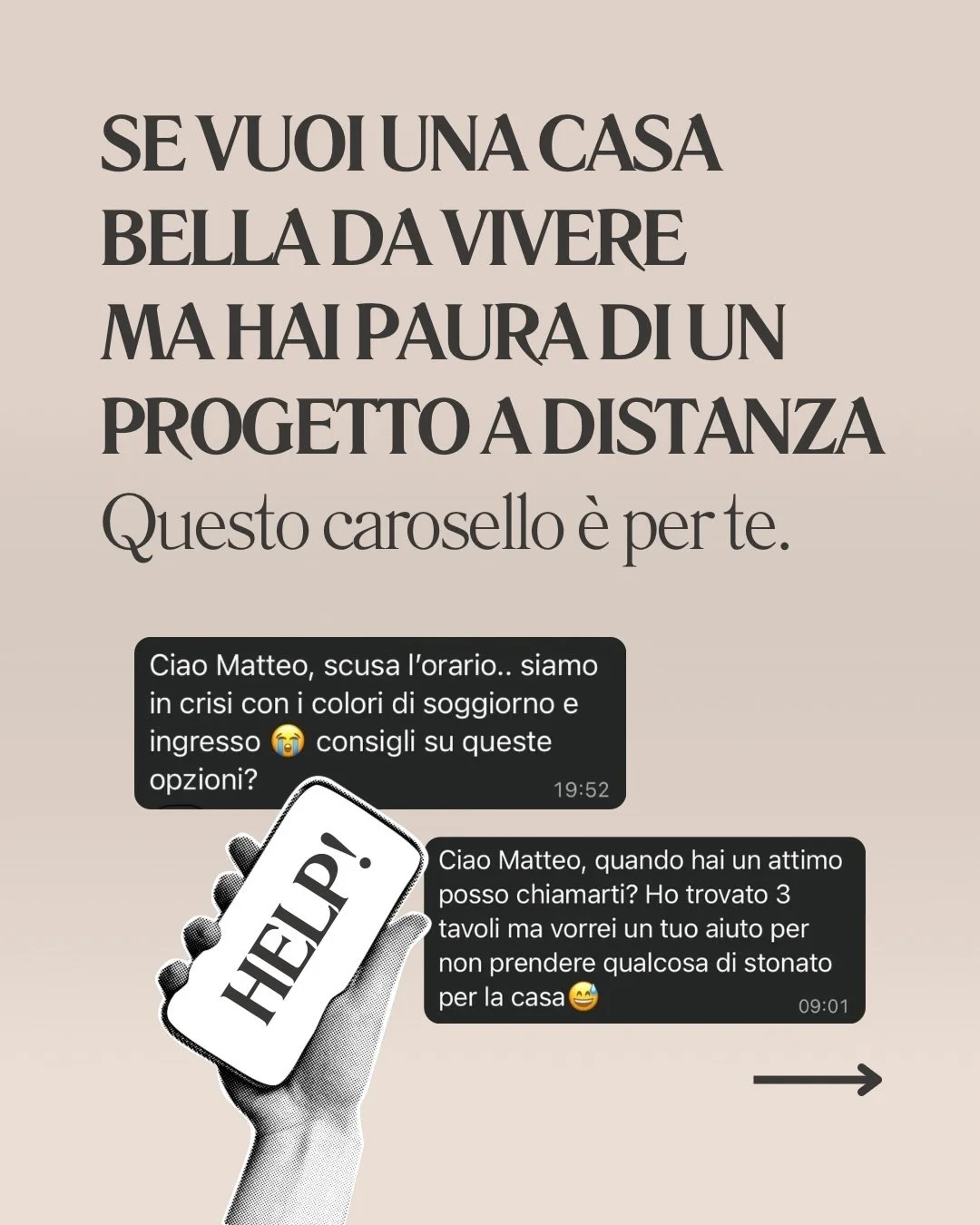 Offro una gamma completa di servizi su misura per trasformare la tua casa nei minimi dettagli. Dalla consulenza di un'ora per risolvere i tuoi dubbi, alla revisione della pianta per ottimizzare gli spazi, fino al progetto completo che abbraccia tutto: dalla disposizione degli ambienti alla scelta dei materiali e dell’illuminazione. In ogni caso, tutto è personalizzabile in base alle tue esigenze.