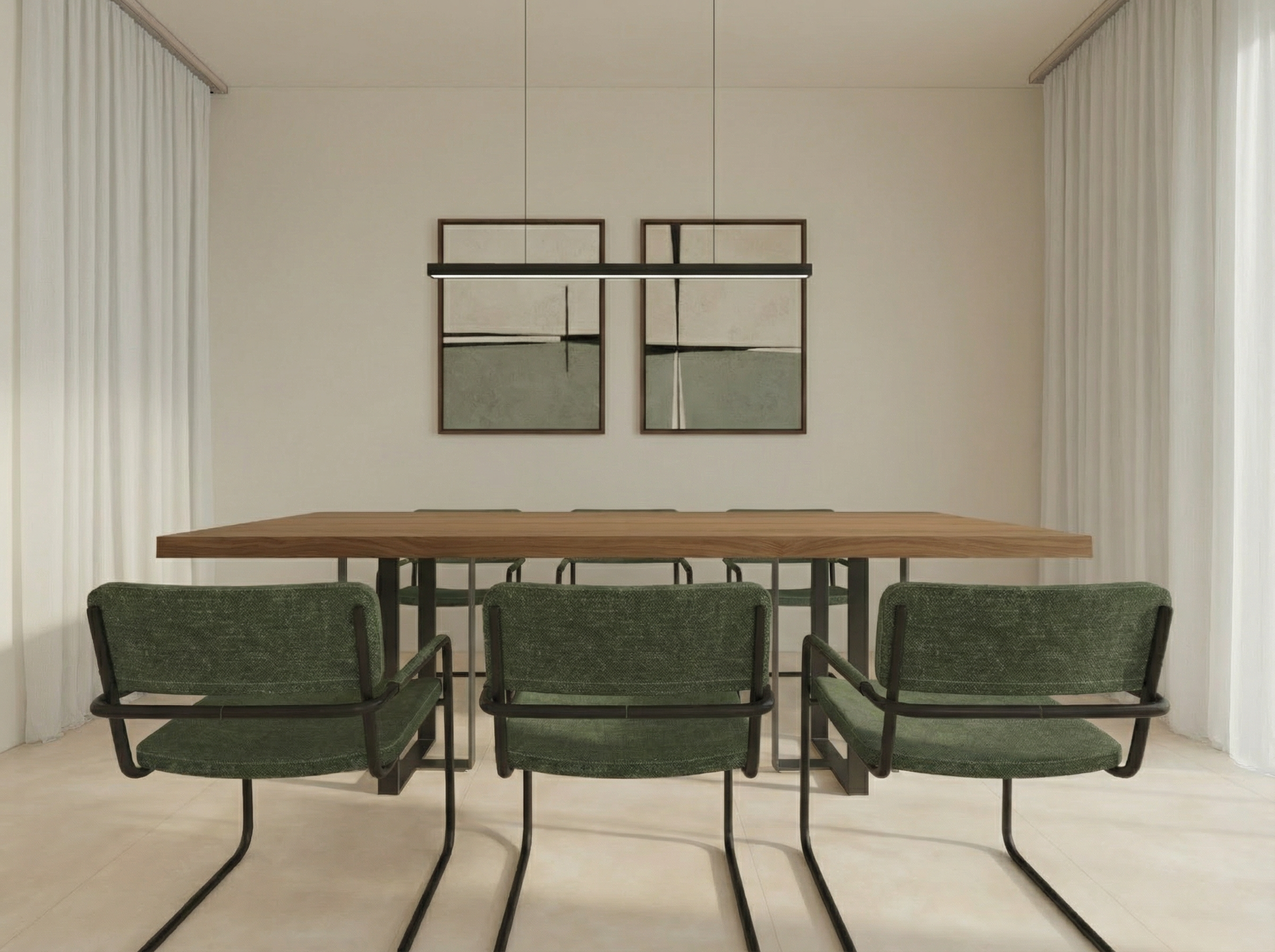 Una casa dai toni leggeri del crema ravvivata dai contrasti più accesi di mobili in noce e tessuti verdi. La ricetta per una casa che doveva integrare i serramenti esistenti, dal colore intenso del noce, senza appesantirne la presenza. Lo abbiamo ripreso quindi in elementi mirati e di impatto come la cucina, che ingloba un pilastro e nasconde una comoda dispensa, legando lo spazio relax del soggiorno con l’area dedicata al tavolo da pranzo.
